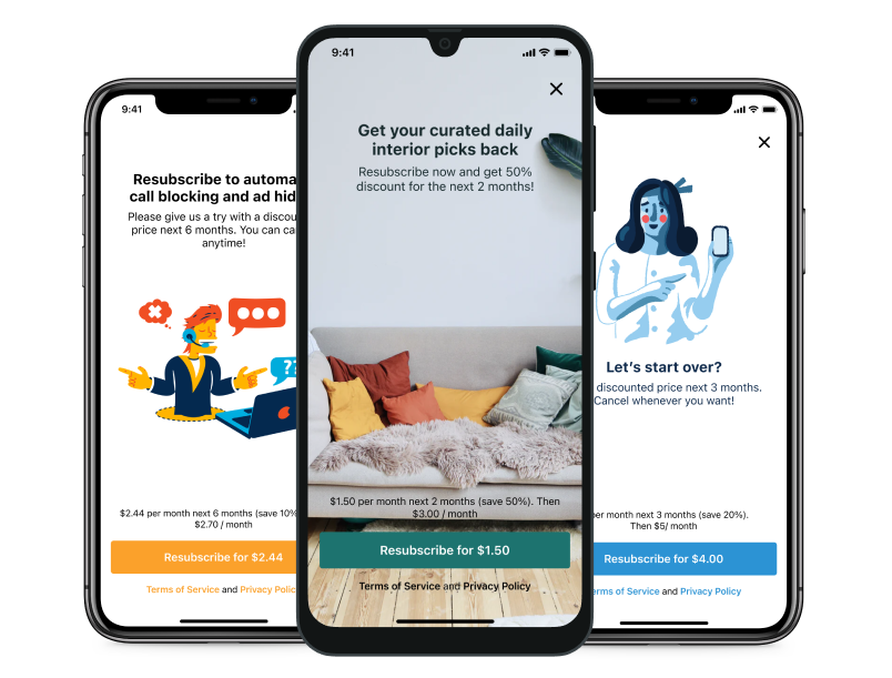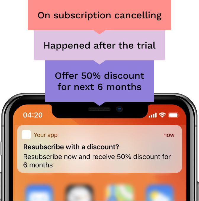 Provide the best incentives, such as the best discounts or special offers, based on the reason for cancellation in order to retain subscribers. You can set the content of the offer in advance, and the offer will be automatically sent to the user based on the reason for cancellation.Utilizing the algorithms cultivated over many years, we propose various patterns of efficient and effective discount offers.